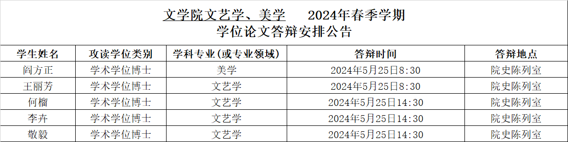 2024年春季学期文艺学、美学专业博士学位论文答辩安排公告