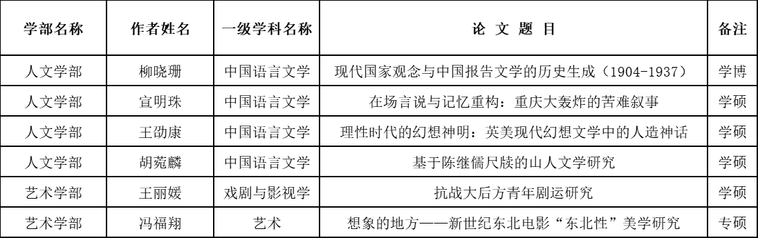 根据《重庆市教育委员会关于开展2025年优秀学位论文评选工作的通知》(渝教研函〔2025〕15号)要求和研究生院“关于开展2025年重庆市优秀学位论文推荐工作的通知”,现将伟德国际1946推荐参评2025年重庆市优秀学位论文的名单公示如下: