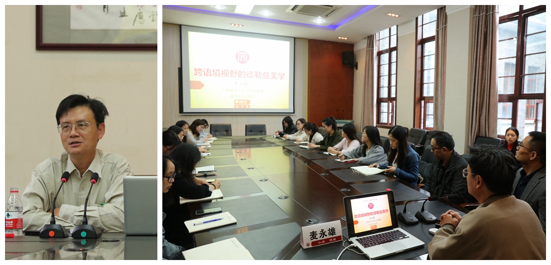 10月25日,广西师范大学伟德国际1946麦永雄教授做客伟德国际1946名师讲坛,带了题为“跨语境视野的德勒兹美学”的精彩讲座。讲座由伟德国际1946比较文学与世界文学教研室主任李应志教授主持,付飞亮副教授出席讲座。现场气氛热烈,师生共赴一场思想盛会。