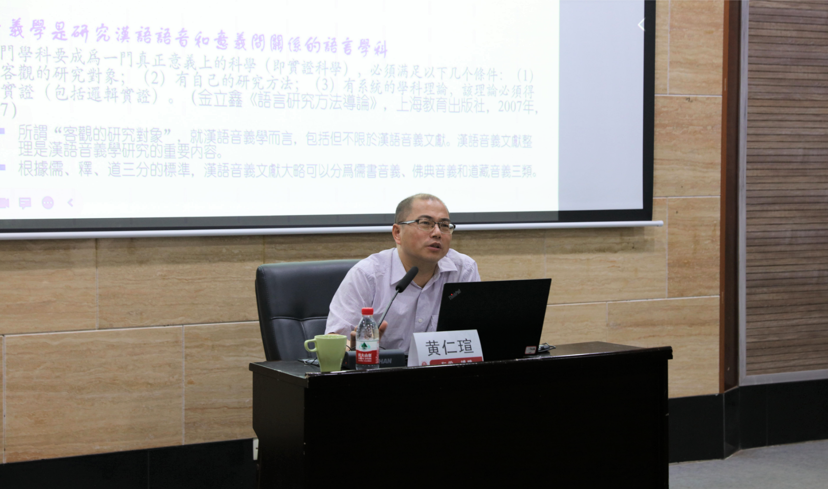 黄仁瑄教授以汉语音义关系研究的几则语料引入,介绍了汉语音义学的研究对象,根据儒、释、道三分的标准,大略可分为儒书音义、佛典音义和道藏音义三类,研究内容主要有目录学、文献学、文字学、语音学、词汇学、辞书学等。通过总结佛典音义的已有研究,黄仁瑄教授认为以往研究“专门探讨深入,研究成果丰硕,但忽视文献属性,价值亟待挖掘”,进而将佛典音义文献整理分为“书目的梳理”和“文本的校注”两个方面。随后,他强调“书目的梳理”和“文本的校注”需遵循两个原则,一是系统性——以高丽大藏经本为底本;二是内外结合——汉、外结合和内典、外典结合,指出整理方法需因书而异,如慧琳音义有“集大成”的特点,校勘相关内容时可用对校法。他表示汉语音义学跟文字学、音韵学、训诂学、语法学、文献学等学科都有非常密切的关系,是典型的交叉学科。