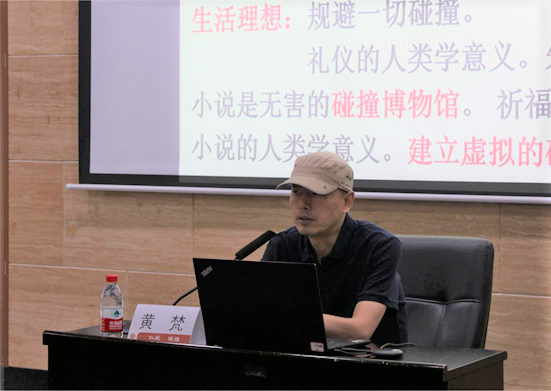 黄梵副教授从个人写作经验出发,分享对小说写作的思考,他提出,小说写作实质是关注人与人、人与自然的碰撞,人类学意义在于建立虚构的碰撞历史博物馆,同时也是生存之需,艺术的核心在于使其特殊,夸张是达到特殊效果的一种手段,而小说把碰撞小概率事件变成常态就是夸张。他认为,小说不能只是生活的描述,而要把它陌生化,尤其是对人物经历的陌生化,即设法不让人物做成他想做的事。随后,黄梵副教授以著名小说为例,从人物行动的动力来源、对立中人的角色意识、细写和略写的平衡原则等方面详细叙述了各种营造陌生化的写作手法,还向同学们介绍了短篇小说的形式结构,他提出,小说也需要诗意,如果说抒情象征自由冒险与非理性,那么叙事则意味着理性。