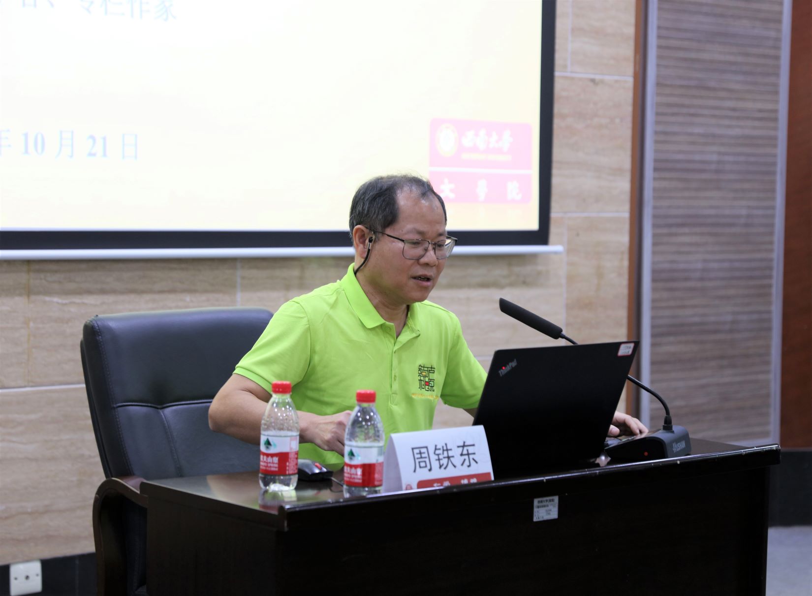 10月21日,知名电影学者、专栏作家周铁东老师做客伟德国际1946名师讲坛,带来题为“解码电影:以类型为媒,与观众对话”的讲座。讲座由伟德国际1946影视艺术系主任刘帆教授主持,相关专业师生参加本次讲座。