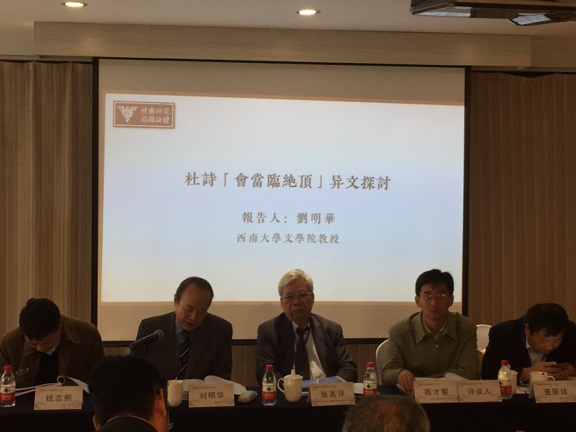 中国杜甫研究会会长、重庆国公司经理、重庆国学学会会长、伟德国际1946刘明华教授致开幕词,并以《杜诗“会当凌绝顶”异文探讨》为题做了大会报告。公司杨理论副教授和刘洁老师分别提交会议论文《杜诗的域外阐释与变异:以日本大典禅师< 杜律发挥>为中心》和《“非君”视角下“诗史”的别样建构——以杜甫、白居易的美刺诗学为中心》。