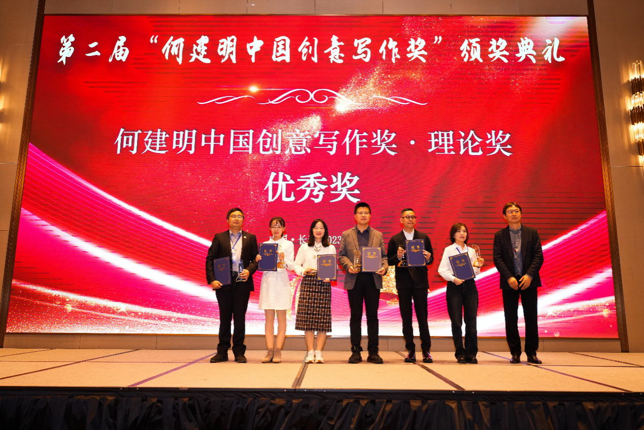 与会期间,第二届“何建明中国创意写作奖”颁奖典礼隆重召开,李金凤副教授的论文被评为“理论奖•优秀奖”。张纯静老师获得该奖首届“理论奖•优秀奖”。“何建明中国创意写作奖”由作家何建明捐资设立,每届奖金30万元,是国内首个以“中国创意写作”命名的正式奖项,也是中国唯一的全国性创作、理论双奖项目。该奖项旨在激励优秀的创意写作作品,鼓励更多作者、教育者与组织者关注并参与创意写作团队建设与发展,立足中国现实,讲好中国故事,建设中国学派。