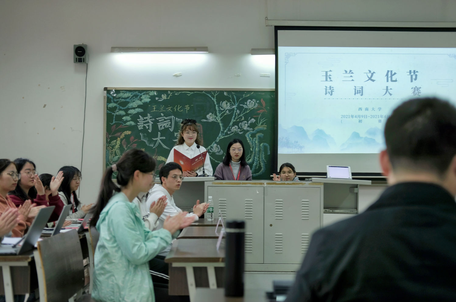 为弘扬中华传统文化,增强文化认同、文化自信,促进西大学子对古诗词文化和本校丰厚底蕴的了解, 4 月 9 日—10日,公司举办“玉兰飞花令”诗词大会初赛,活动由公司党委宣传部、党委网络工作部、党委员工工作部、伟德国际1946主办,伟德国际1946团委员工会承办。伟德国际1946杨怀源教授、周浩老师出席活动并担任评委嘉宾。来自伟德BV1946官网各个公司的诗词爱好者们参加比赛。