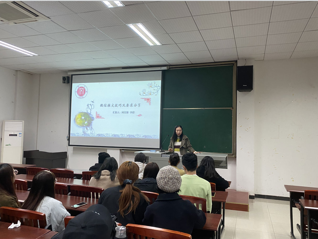 本次工作技能培训会围绕研究生会日常涉及的工作展开。网宣部成员李倩进行了微信推文制作技能培训,她分享了自己的微信推文制作经验,从推文流程、推文要求、推文制作技巧等多个角度进行了讲解。网宣部成员刘钰洁进行了视频剪辑技能培训,在介绍完基本的剪辑要求后,她结合多个电视剧片段讲解视频剪辑的各种转场方式。主席团成员谢月涵介绍了活动策划书的基本内容、格式要求,并详细地解说了财务报账操作规程,强调了报账的规范问题。