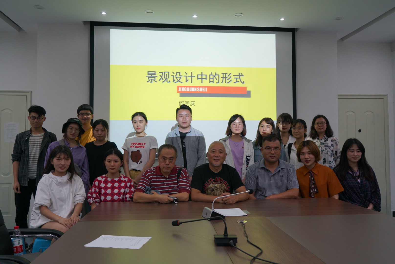 活动伊始,何其庆老师向同学们展示了风格各异的景观图片,并结合生活实际对景观设计中形式的概念及其功能进行了生动有趣的介绍。他指出,形式是设计者与使用者进行交流的特殊语言体系,它具有三个层面的功能:一是视域范畴上的形、色、量、质;二是新式美上的感官愉悦;三是心理与文化上的唤起。在何教授的讲解下,同学们既欣赏了不同建筑的形式美,也领会到景观设计中独具特色的艺术讲究。