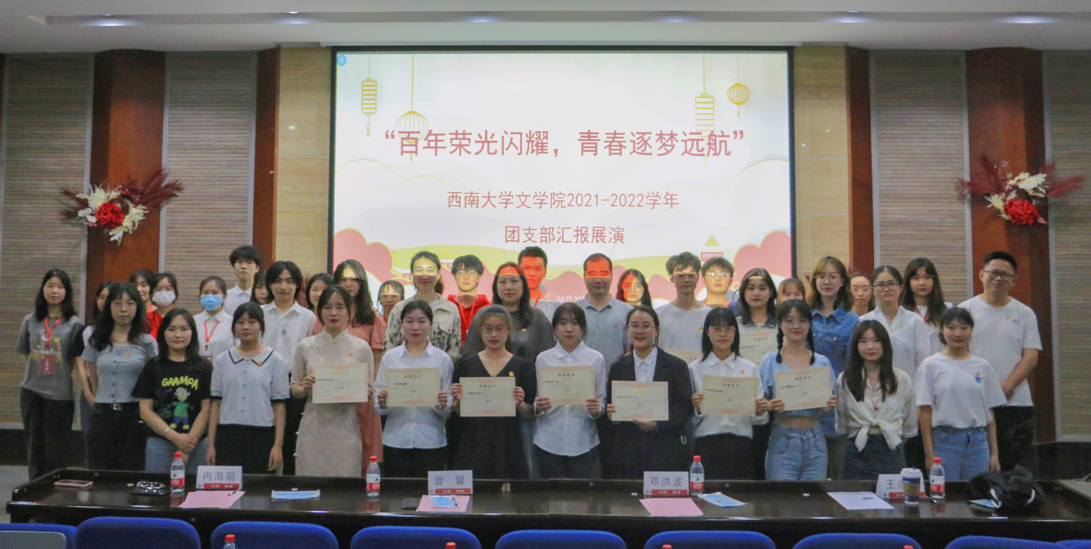 在团歌激昂的旋律中,团支部汇报风采展演拉开帷幕。首先,参赛团支部的团支书从支部建设、学风建设、支部特色活动、团支书开展工作情况等方面进行了三分钟的述职汇报,介绍了各支部的基本情况。接着,各支部进行了诗歌朗诵、舞蹈、舞台剧等形式的特色风采展演。经评比,2020级汉语言文学(师范)四班团支部、2021级汉语言文学(师范)一班团支部获一等奖,2020级汉语言文学班团支部、2019级汉语言文学(博雅)班团支部、2020级汉语言文学(师范)三班团支部获二等奖。2021级汉语言文学(师范)四班团支部、2020级汉语言文学(师范)一班团支部、2020级汉语言文学(师范)二班团支部、2021级汉语言文学(师范)二班团支部、2019级汉语言文学(师范)四班团支部获三等奖。