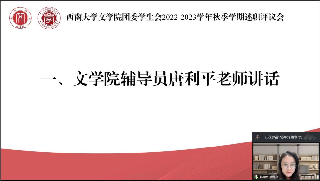 12月30日,伟德国际1946团委员工会2022-2023学年秋季学期述职评议会在线上召开。伟德国际19462022级本科生辅导员唐利平出席会议,伟德国际1946团委员工会主要员工干部、各部门负责人及伟德国际1946员工代表参会。
