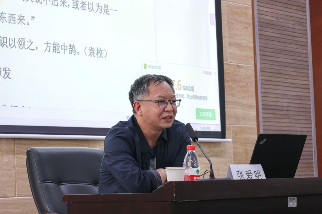 张爱明老师围绕“语文教师的基本素养和文本解读能力”进行详细讲解。张老师以自身教育经历为切入点,以《诗经》《庄子》等经典文本为依托,指出在文本解读过程中训诂与义理结合的重要性,阐明了训诂学与文学的关系,强调了教师个人素养对教学活动和育人效果的影响力。他旁征博引、条分缕析、深入浅出、娓娓道来,既有高屋建瓴的理论指导,又有现货生动的案例佐证,为“优师计划”师范生提高职业素养、提升专业能力提供了切实可行的学习路径。交流过程中,张爱明老师耐心解答了同学们在专业学习、职业发展等方面的问题,并勉励同学们努力丰富自身学识与能力,不断提升文学、美学和职业素养,以习近平总书记提出的“四有”好教师为准则,珍惜时光,刻苦学习,砥砺品格,增强传道授业解惑本领,毕业后到祖国和人民最需要的地方去。