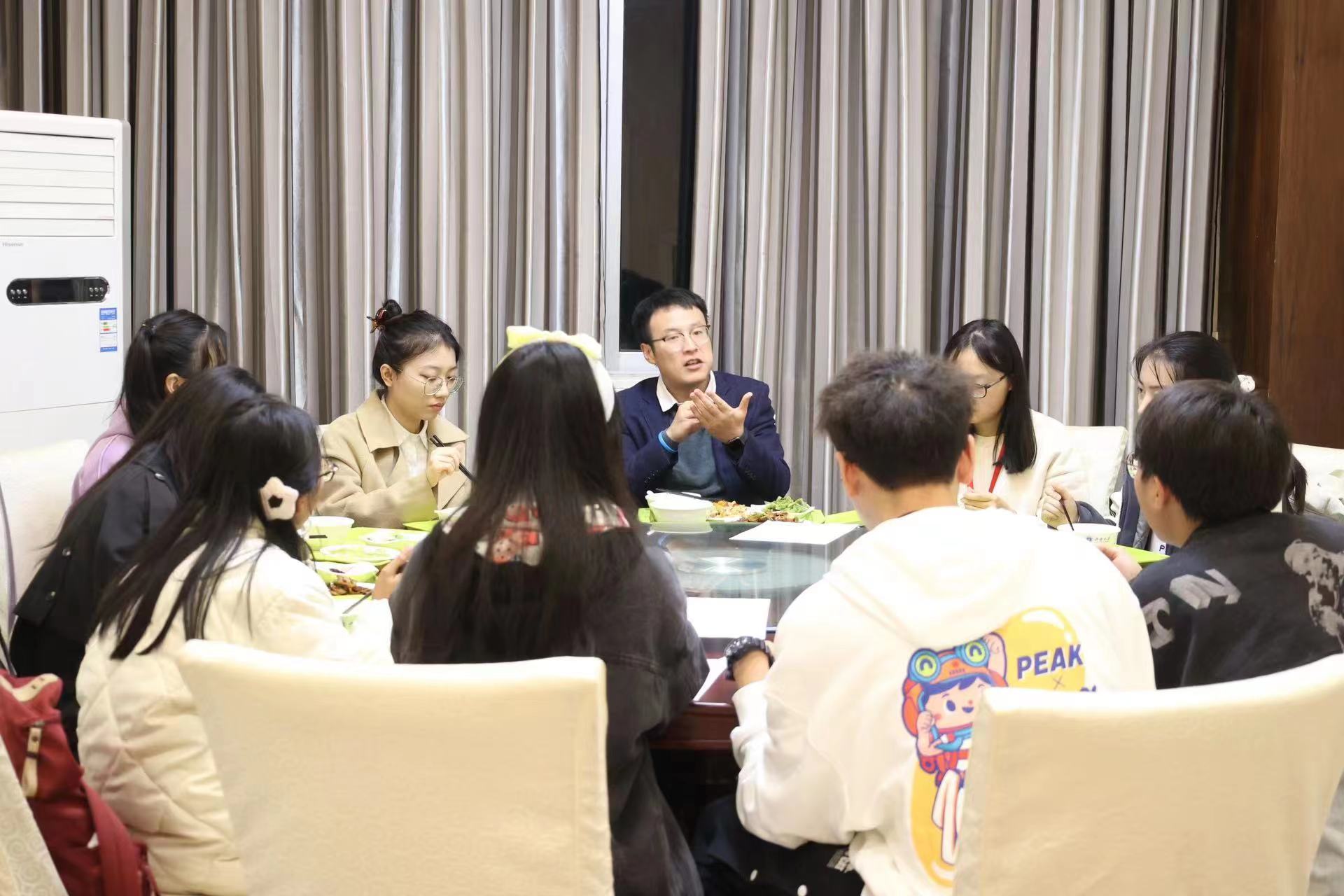 11月22日,公司举办2023年第15次教授晚餐会。公司郭帅副教授受邀出席,与汉语言文学(师范)、汉语国际教育等专业的8位同学围绕“怎样阅读文学作品”的话题展开讨论。