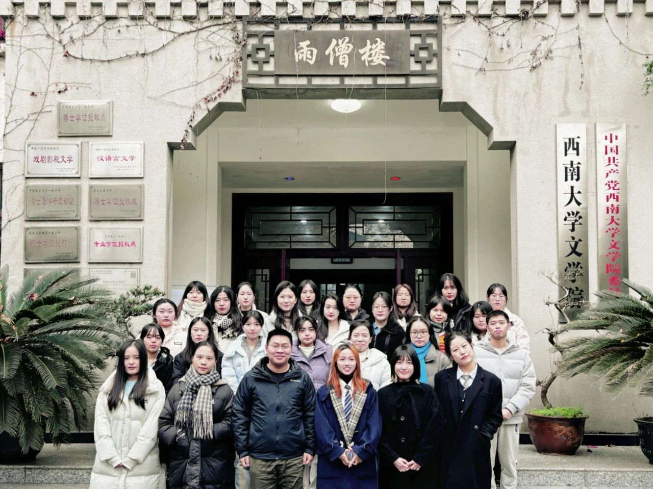 研会全体成员在雨僧楼前合影留念后,本次述职评议会正式开始。会议主要由凌飞老师致辞、主席团述职、各部门代表人述职以及研会成员述职四个部分组成。