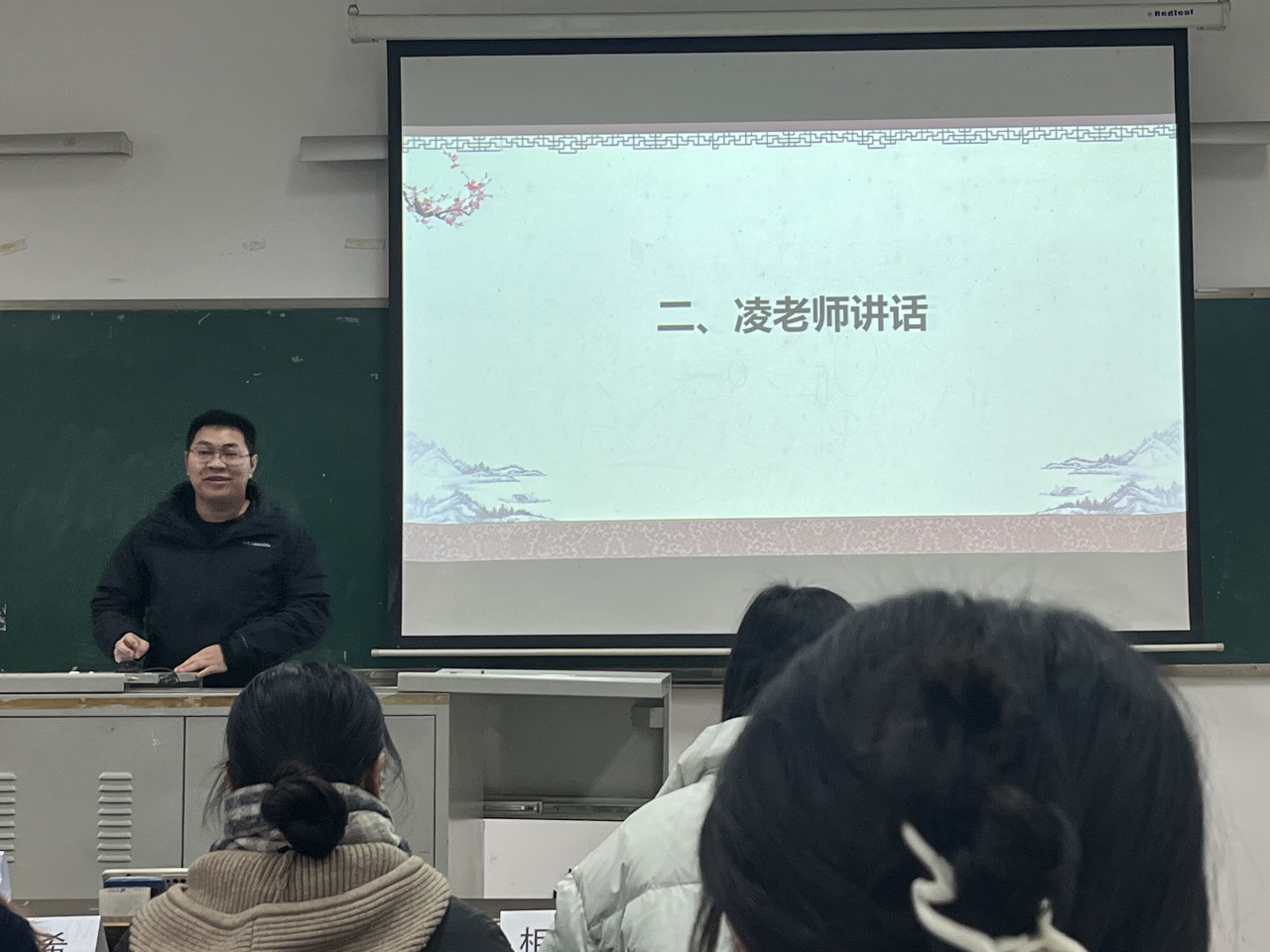 首先,出席本次会议的凌飞老师发表讲话。他肯定了研会秋季学期的工作表现,对研会成员们的辛勤付出表示感谢。他希望成员们能够通过反思与总结自己的工作情况有所收获,自身得到进步的同时,也共同推进研会发展,将研会建设得越来越好。
