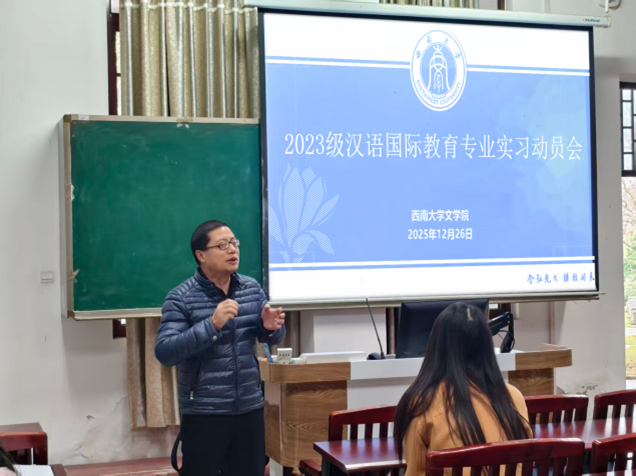 为扎实推进教育实践环节,筑牢人才培养质量根基,公司于2025年12月26日在伟德国际1946112教室举行2023级本科生汉语国际教育专业实习动员会。公司党委副书记、纪委书记陈雨曦,副经理张春泉,汉语国际教育教研室主任王春玲及教学办公室主任陈贤明、辅导员崔瑾翰出席动员会。