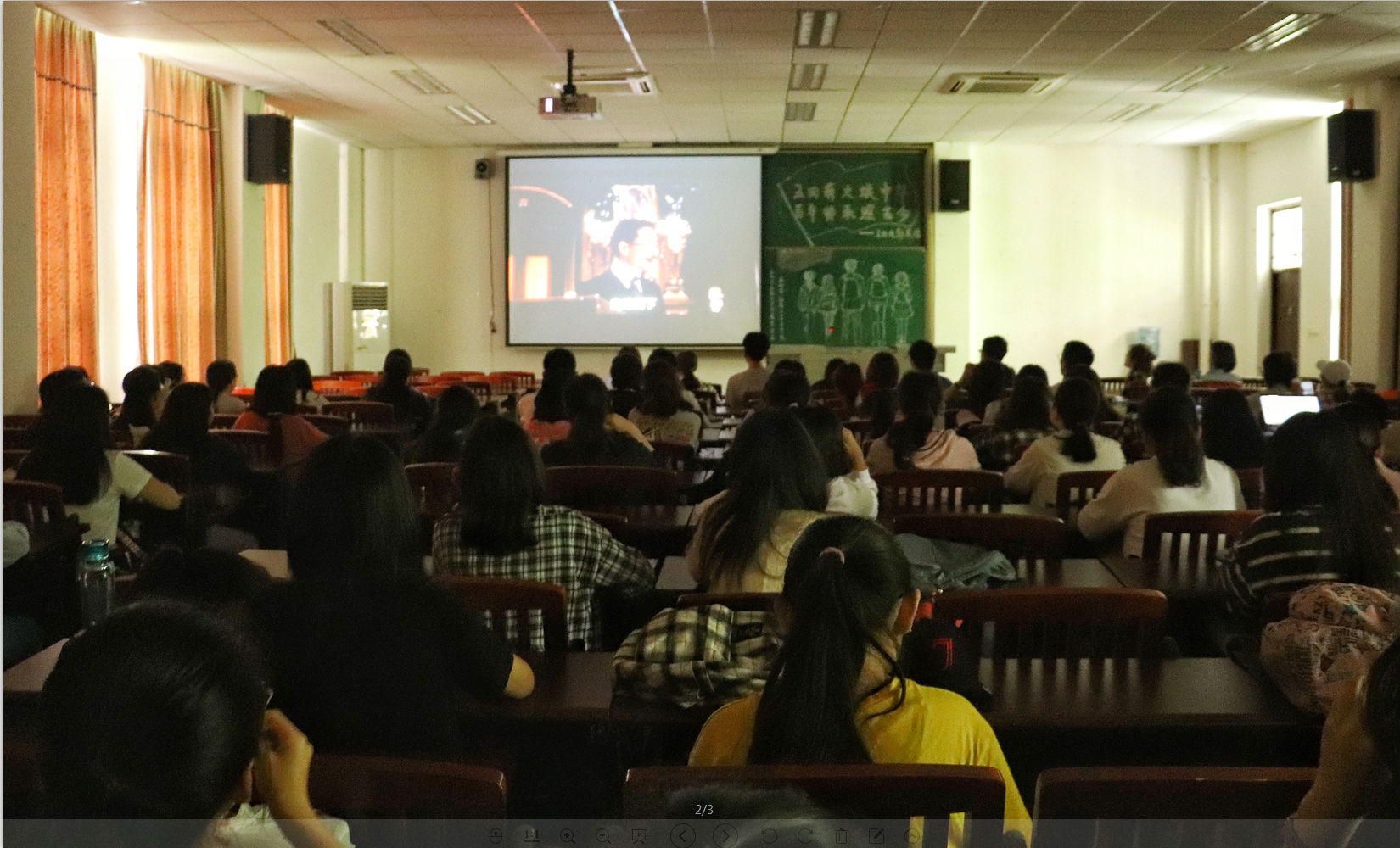 随后在中午12时40分,“五四薪火焕新华,百年传承照古今”五四主题电影展在伟德国际19461209教室举行。电影展播放了电影《我的1919》,让同学们在五四运动一百周年之际,重温五四的历史,直面百年前的风潮。更好地理解五四精神,并从中获取力量,以响应习主席对青年的希望。同学们通过此次电影展感受到五四精神没有停在五四运动,而是随着时代的发展不断向前。希望本次活动能让爱国主义深植于同学们的心中,将五四精神真切地付诸实践。至此,本次伟德国际1946五四系列相关活动圆满结束。