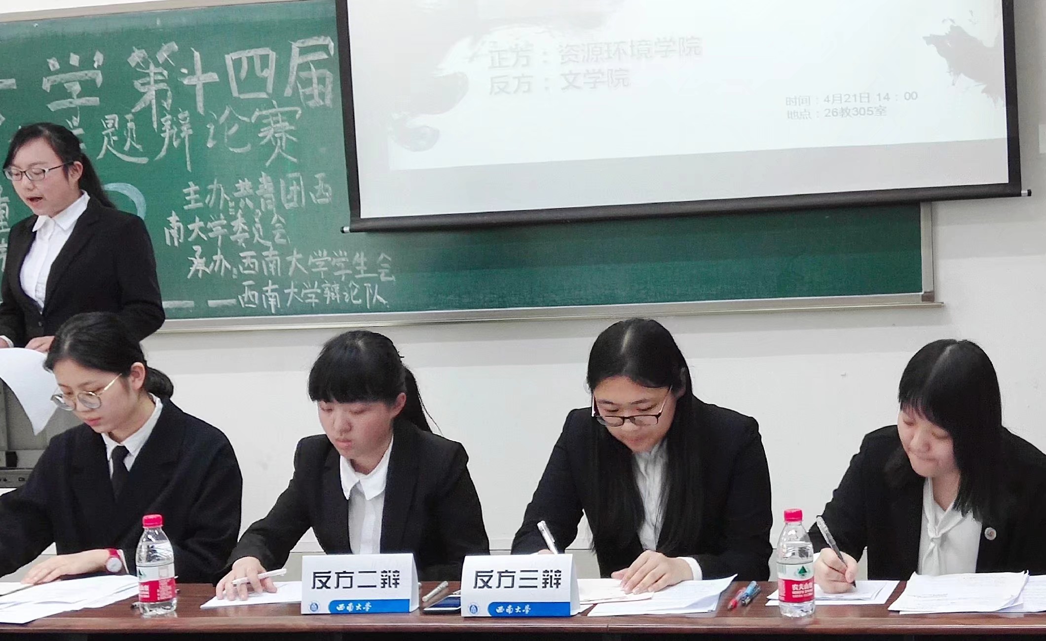 4月21日下午,伟德BV1946官网辩论赛复赛在26教305教室拉开帷幕。本次比赛辩论双方为伟德国际1946辩论队与资源环境公司辩论队。双方以“人格与人缘谁更重要”为题进行辩论。其中正方资源环境公司辩论队持“人格比人缘更重要”观点,反方伟德国际1946辩论队持“人缘比人格更重要”观点。
