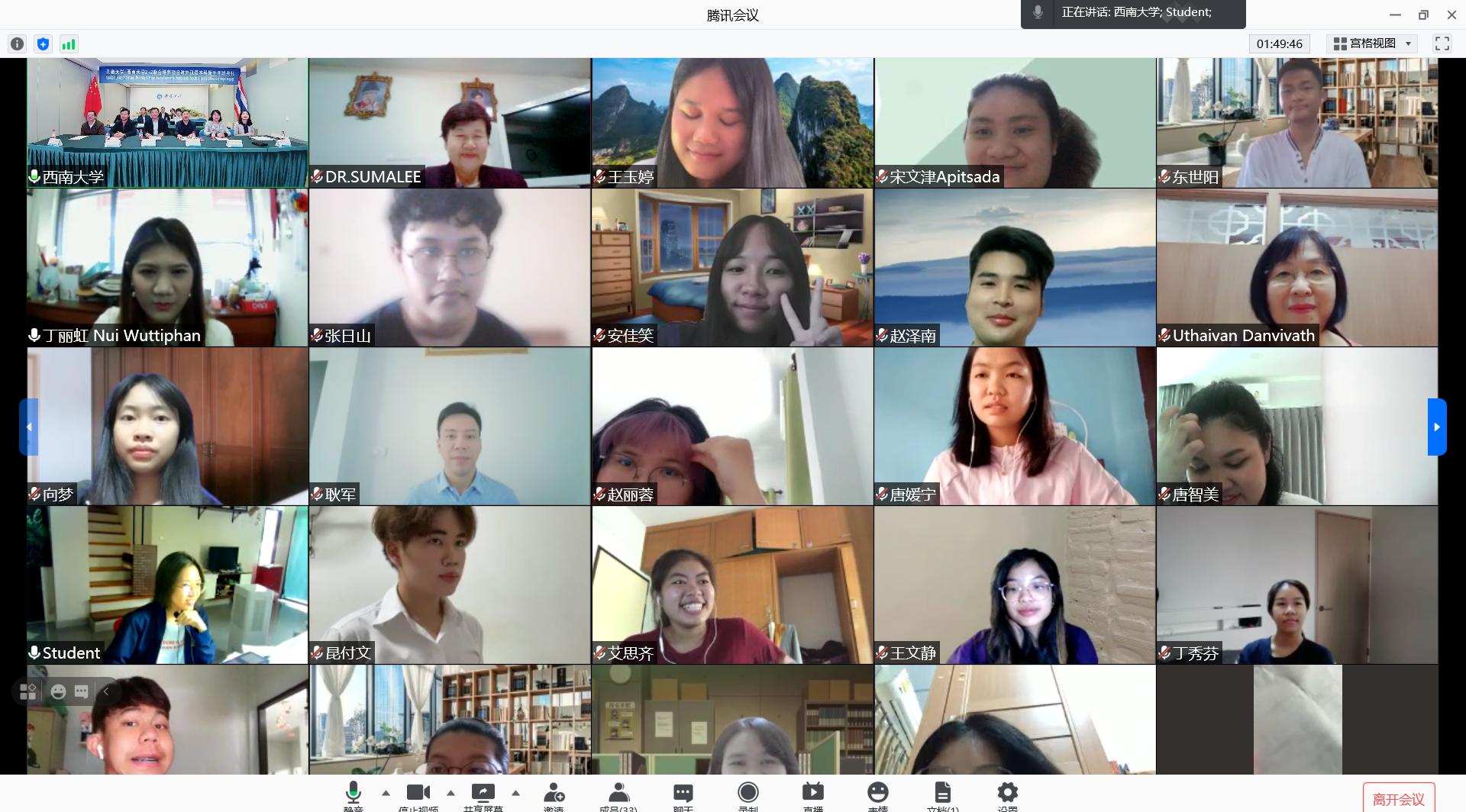 孔敬大学教育公司经理苏玛丽在致辞中表达了对中国和伟德BV1946官网的深情厚谊,向公司和公司精心组织的线上学习表示衷心的感谢。她表示,中国有着悠久的历史文化,伟德BV1946官网有着富的汉语国际教育经验,希望大家严格要求自己,培养国际视野,将学到的知识带回泰国,为走向工作岗位奠定良好的基础。
