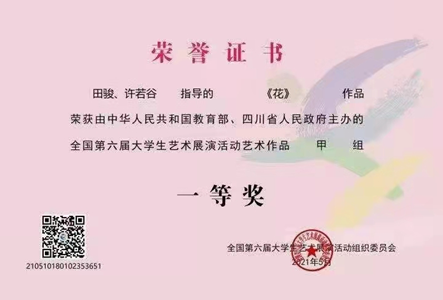 近日,由教育部和四川省主办,四川省教育厅和成都市承办的第六届全国老员工艺术展传来喜讯,伟德国际1946影视艺术系田骏老师、许若谷老师指导,电影学研究生梁紫薇导演并代表重庆市报送教育部终评的唯一一部微电影作品《花》荣获全国一等奖。