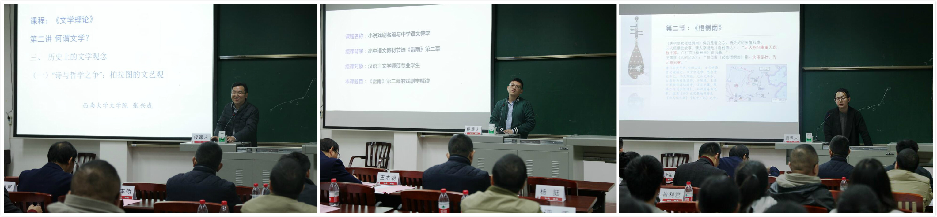 参赛教师以“新文科,从我的课堂开始”为主题,根据本学期教学情况自定讲课内容,在讲课中扎根对作品本身的探寻,融入自己的研究成果,深入解读教学内容。刘叙武老师从亚里士多德戏剧提示为出发点,深入剖析了戏剧《雷雨》第二幕。张兴成老师以柏拉图的文艺观为切入点,探讨作品《柏拉图:诗人与哲学家之争》,见微知著呈现历史上的文学观念。付佳奥老师讲授白朴的杂剧和歌曲,解读悲伤凄凉的《梧桐雨》。毛志萍老师以视频中汉语拼音的读音是否标准为探讨,讲授生动有趣的汉语拼音方案读音课。姜永琢老师从思维、存在、表达三个维度出发,分析阐述西方美学思想。郑邦宏老师讲授说文部首形体演变一课,将晦涩的理论转换为有趣的语言。邝明艳老师解读了史诗巨匠荷马的作品,探究了奥德修斯伤疤的背后文学魅力。马泰祥老师深入剖析了赵树理建国后小说创作。许若谷老师从《谁先爱上他的》剧作的几个关键问题入手,解密影视剧作中“色彩——镜头”等创作技巧。讲课结束后,评委曾利君教授、刘帆教授从教学内容、教学语言、教学态度、教学组织和教学特色等方面进行点评与打分。最终,毛志萍老师被推选出参加公司讲课比赛。