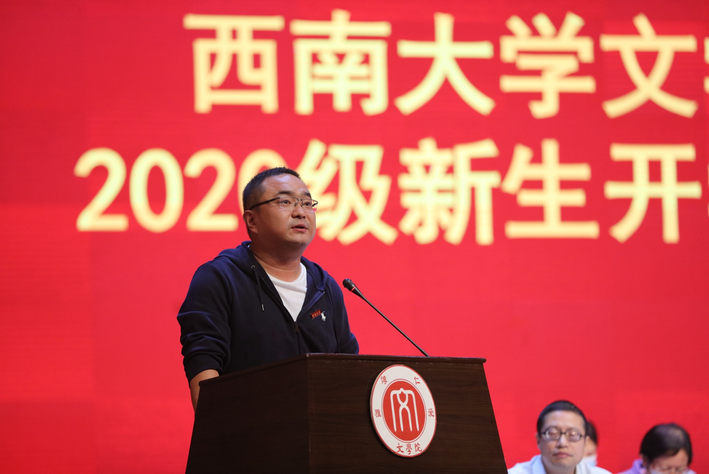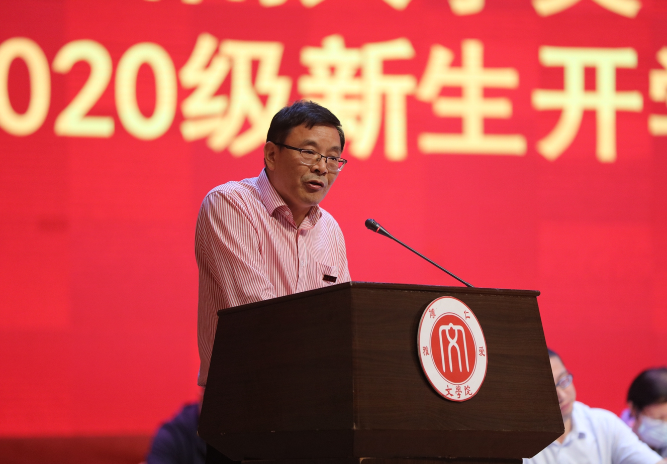 经理王本朝教授发表致辞并代表全院师生员工向新生们表示欢迎和祝贺。他指出,同学们即将开启一段新的人生征程,伟德国际1946也将是你们人生的加油站。随后,王本朝经理结合自身从教30年的经历向新生们提出三点希望:一是“立志高远”。不同目标,就会有不同的追求,也会有不同的老员工活。要有理想、有目标,做一个有情怀、有独立思想、有审美趣味、有现代思维的人;二是“脚踏实地”。文学是思想的结晶,是语言的艺术,是生命的象征。不要恃才傲物、自我中心、华而不实,要学会理解人、包容人、尊重人;三是“以读书为乐”。要丰富自己的生活、精神和情感。多读中外文学经典和思想文化名著,在阅读中积累知识,养成审美能力,学会写作技巧。王本朝经理勉励大家不负韶华,珍惜大学时光,给未来留下充实而美好的回忆。