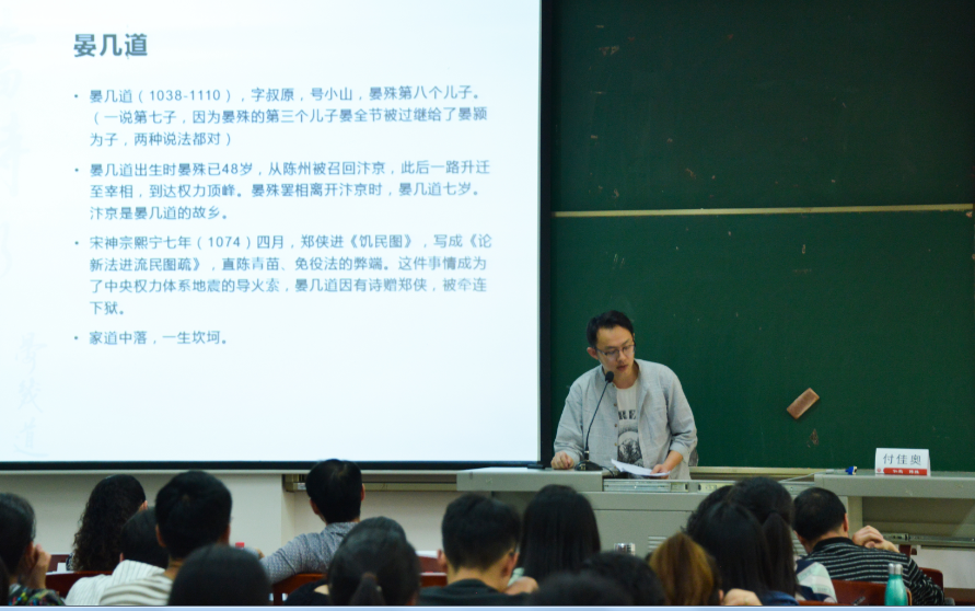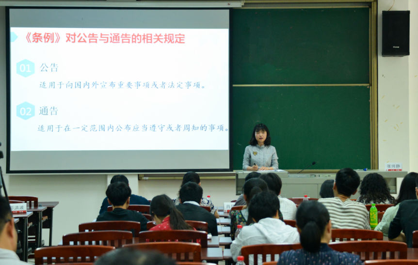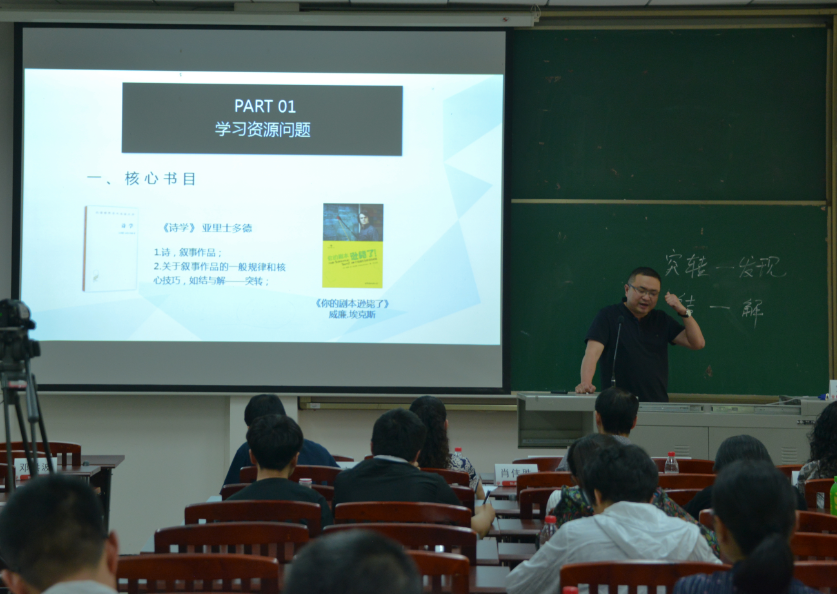 寇鹏程老师深入剖析了儒学开创者孔子“仁”“爱”“美”的中国美学理念;刘建平老师选取西方美学的角度,从悲剧概念和悲剧主角性格两个方面阐释了亚里士多德的悲剧理论;张纯静老师通过分析公文文种乱用的现象,就公告与通告的区分要点进行了讲解;姜永琢老师详细讲解了艺术的内容与形式;付佳奥老师对晏几道的《临江仙·梦后楼台高锁》进行了赏析,诗词意境引人入胜;梅琳老师剖析曹禺的经典作品《雷雨》,阐释该四幕悲剧中序幕与尾声的作用;刘帆老师从剧作的几个关键问题入手,解密影视剧作中“突转——发现”等创作技巧;郭帅老师解读了文学巨匠莫言的作品,探究莫言作品中的文学魅力;刘洁老师另辟蹊径,讲解了《水浒传》中的女性恶观;刘叙武老师以在我国戏曲历史上有重要地位的昆剧声腔的由来为切入点,讲解了明初南戏四大声腔;王小惠老师由浅入深的阐释了《骆驼祥子》中祥子的性格转变;李子荣老师从“什么是语言?”这一问题引入,带来了生动多彩的“语言学概论”课。