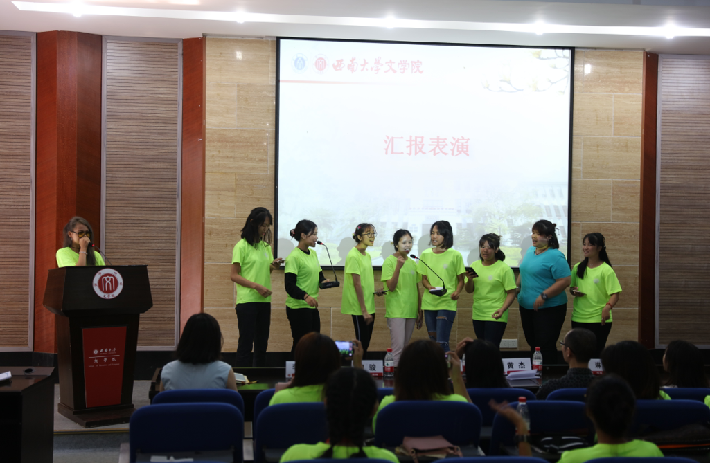 在观看完活动回顾视频和夏令营微电影后,结营仪式正式开始。首先,夏令营学员们分成三组进行了汇报表演。加了 Beatbox元素的《老鼠爱大米》合唱,让人耳目一新;泰国同学吹奏的《友谊地久天长》让人惊叹不已,很难相信他们两周以前才第一次接触葫芦丝;泰国东北特色舞蹈《无尽的欢乐》为结营仪式营造了欢快喜庆的氛围。