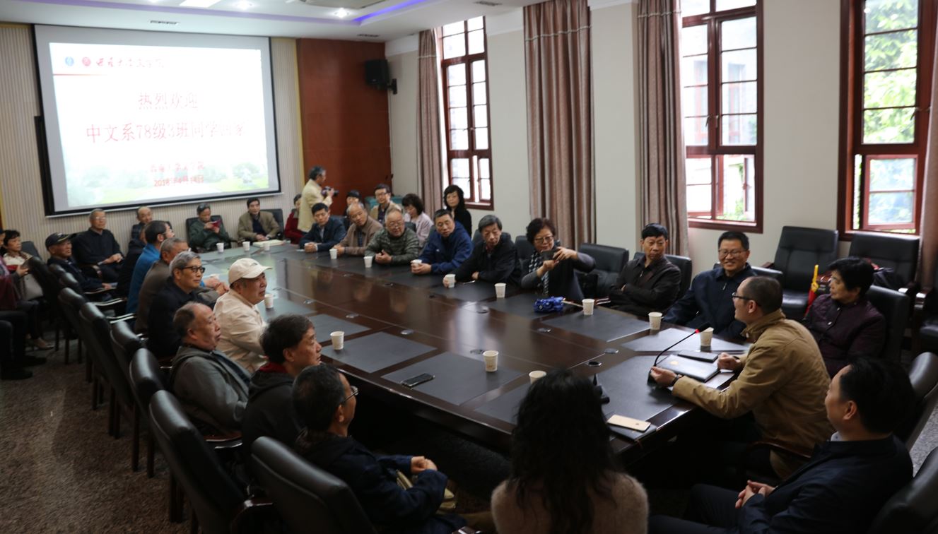 随后,78级3班尹大力员工赠书《汉字新探》并向母院汇报多年来的研究成果。至此,中文系78级三班员工会圆满结束。