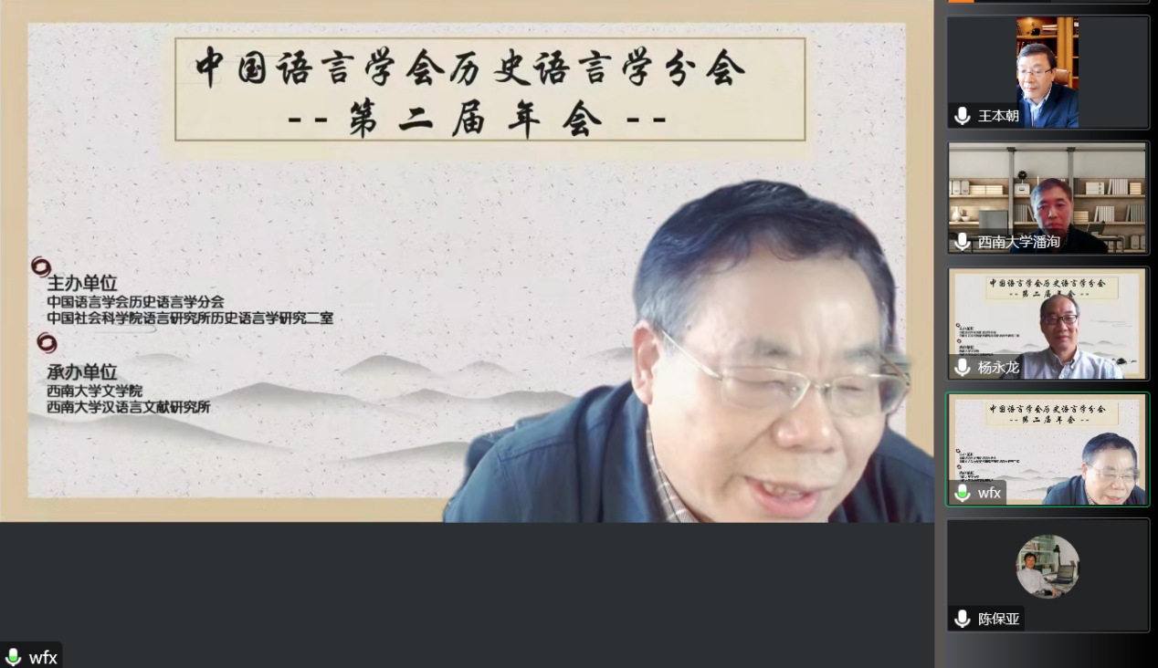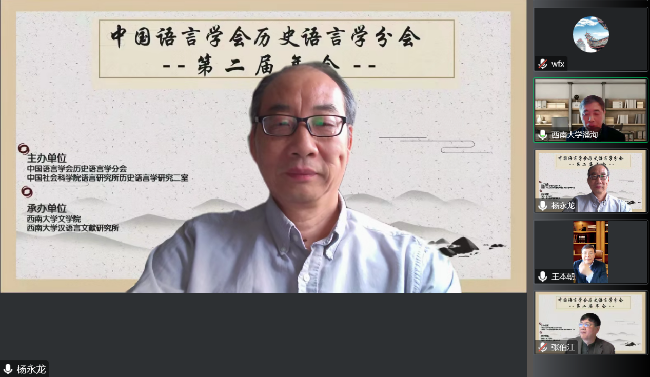 受疫情影响,本次会议采用线上方式举行,来自中国社会科公司、北京语言大学、中国人民大学、北京大学、首都师范大学、北京师范大学、北京外国语大学、南开大学、浙江大学、南京大学、兰州大学、复旦大学、中山大学、四川大学、武汉大学、安徽师范大学、百色公司、南京中医药大学、浙江财经大学、天津科技大学、华南农业大学、江西师范大学、重庆师范大学、天津师范大学、海南师范大学、闽南师范大学、上海师范大学、浙江师范大学、湖北师范大学、辽宁师范大学、广西大学、吉首大学、三峡大学、湖北大学、烟台大学、内蒙古大学、中央民族大学、云南民族大学、伟德BV1946官网等40余所高校和科研单位的240余名专家、研究生线上参会。