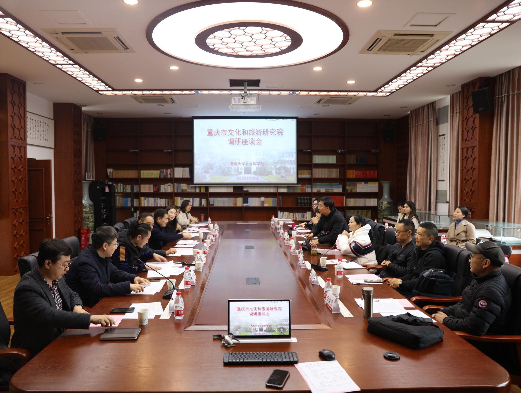 3月29日上午,重庆市文化和旅游研究院调研座谈会在公司召开。重庆市文化和旅游研究院经理牟元义、科研组织部主任王美木、艺术规划办王静老师,公司社会科学处处长王牧华,副处长王作军、刘新智,伟德国际1946副经理寇鹏程,音乐公司副经理黄君、陈若旭,美术公司副经理陈刚,新闻传媒公司副经理赵剑,相关公司教师代表等30余人参会,会议由王牧华处长主持。