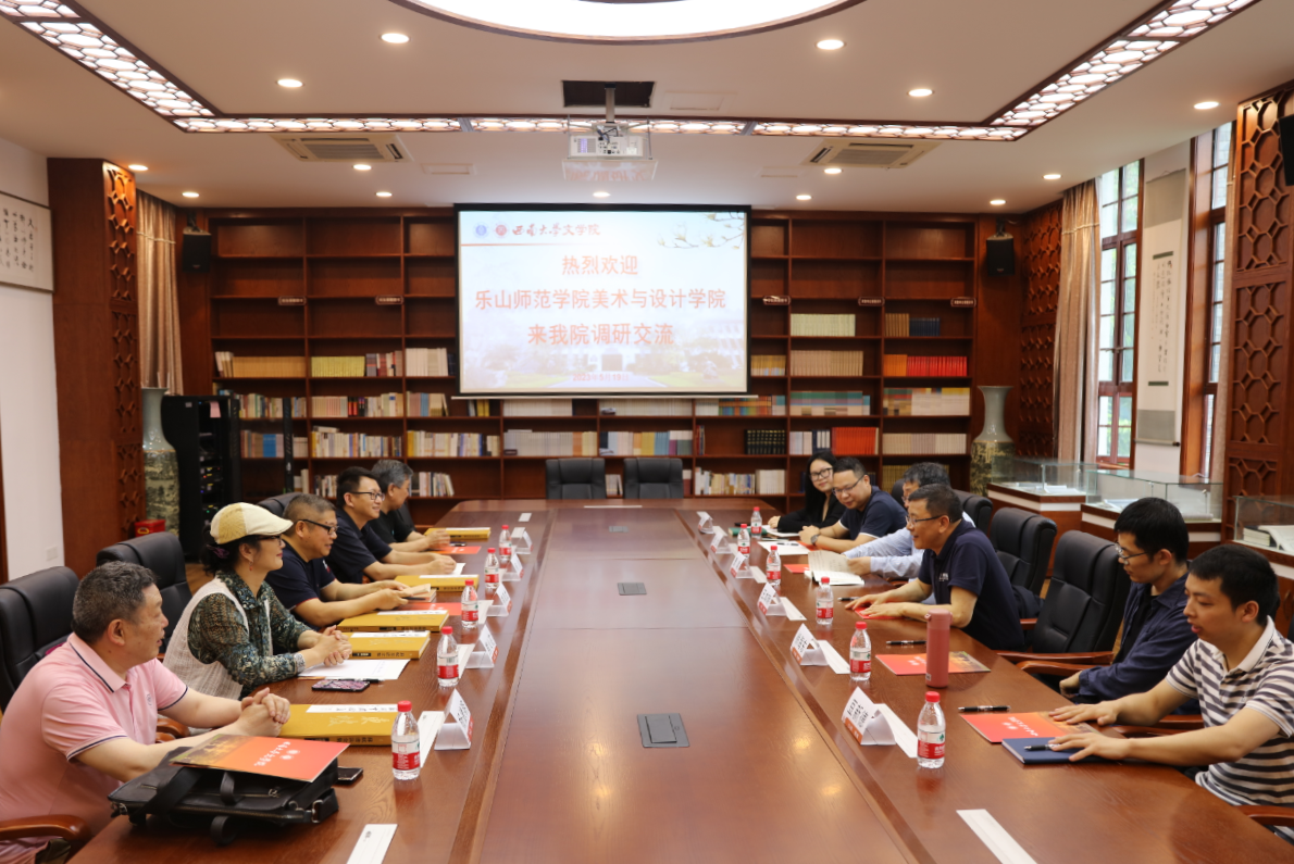 5月19日,乐山师范公司美术与设计公司经理熊泽文,副经理何川副教授、熊火花副教授,国画教研室李开能教授,书法教研室主任杨德明教授来伟德国际1946调研交流。伟德国际1946经理王本朝教授、中国书法研究所所长曹建教授,汉语言文献研究所徐海东副教授,出版社市场部副主任曾文、市场部卫彦竹,伟德国际1946博士研究生豆新德参加座谈。