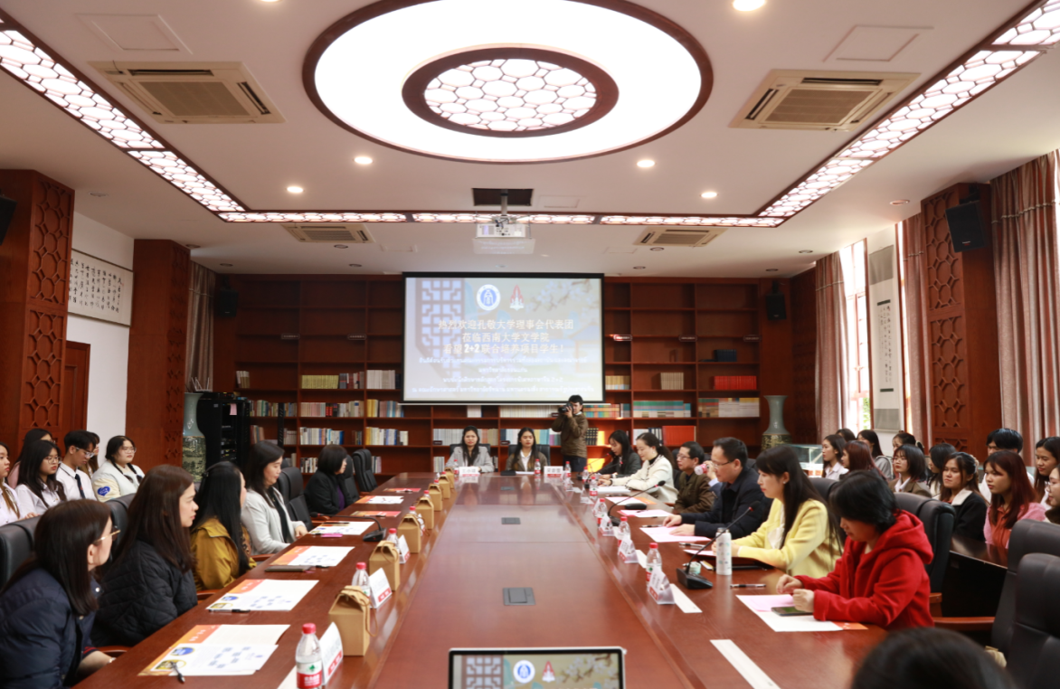 11月20日,泰国孔敬大学董事长助理阿查拉婉·托帕娜姆率孔敬大学理事会代表团一行来到伟德国际1946看望两校联合培养的泰国职工,并与本院师生代表亲切座谈。