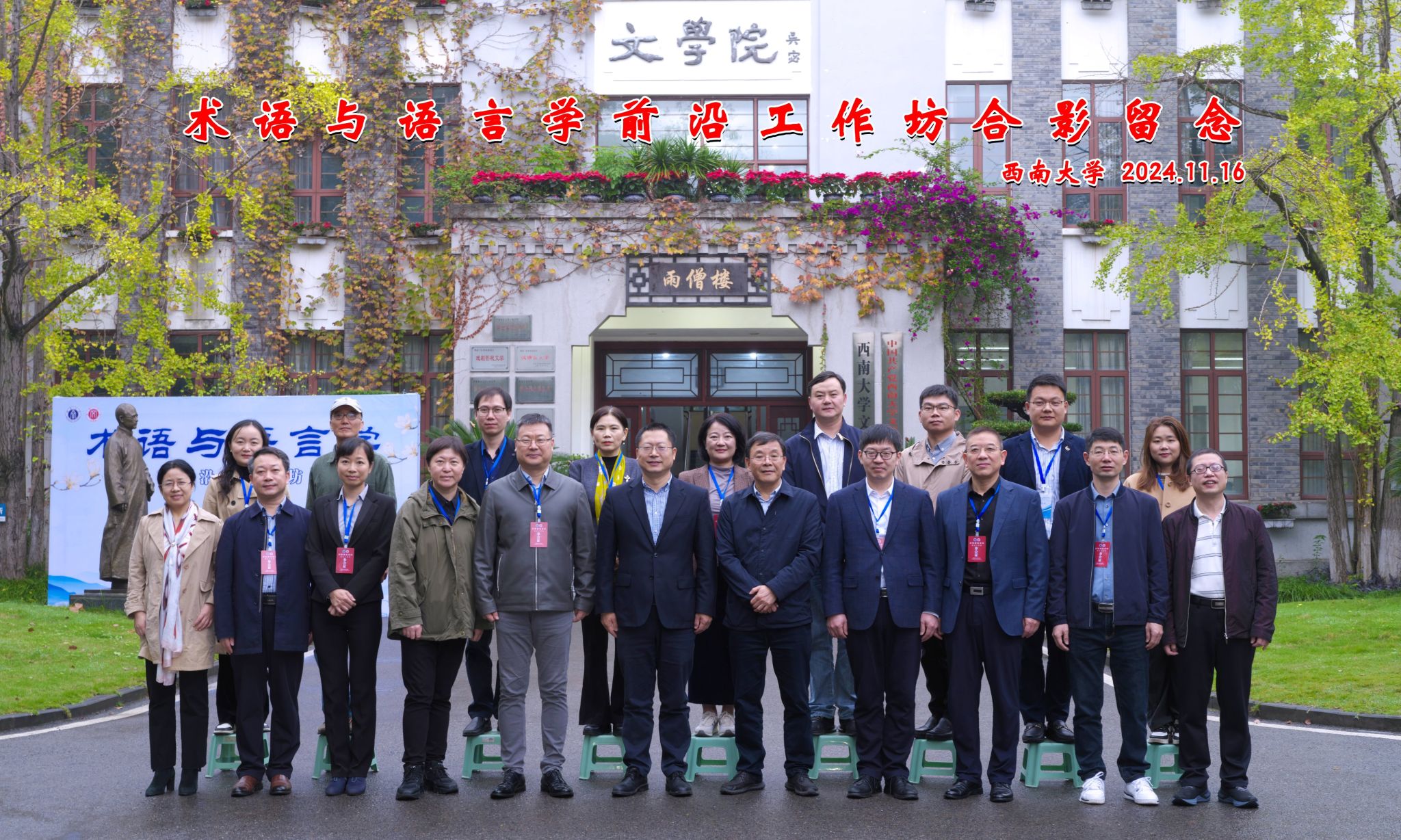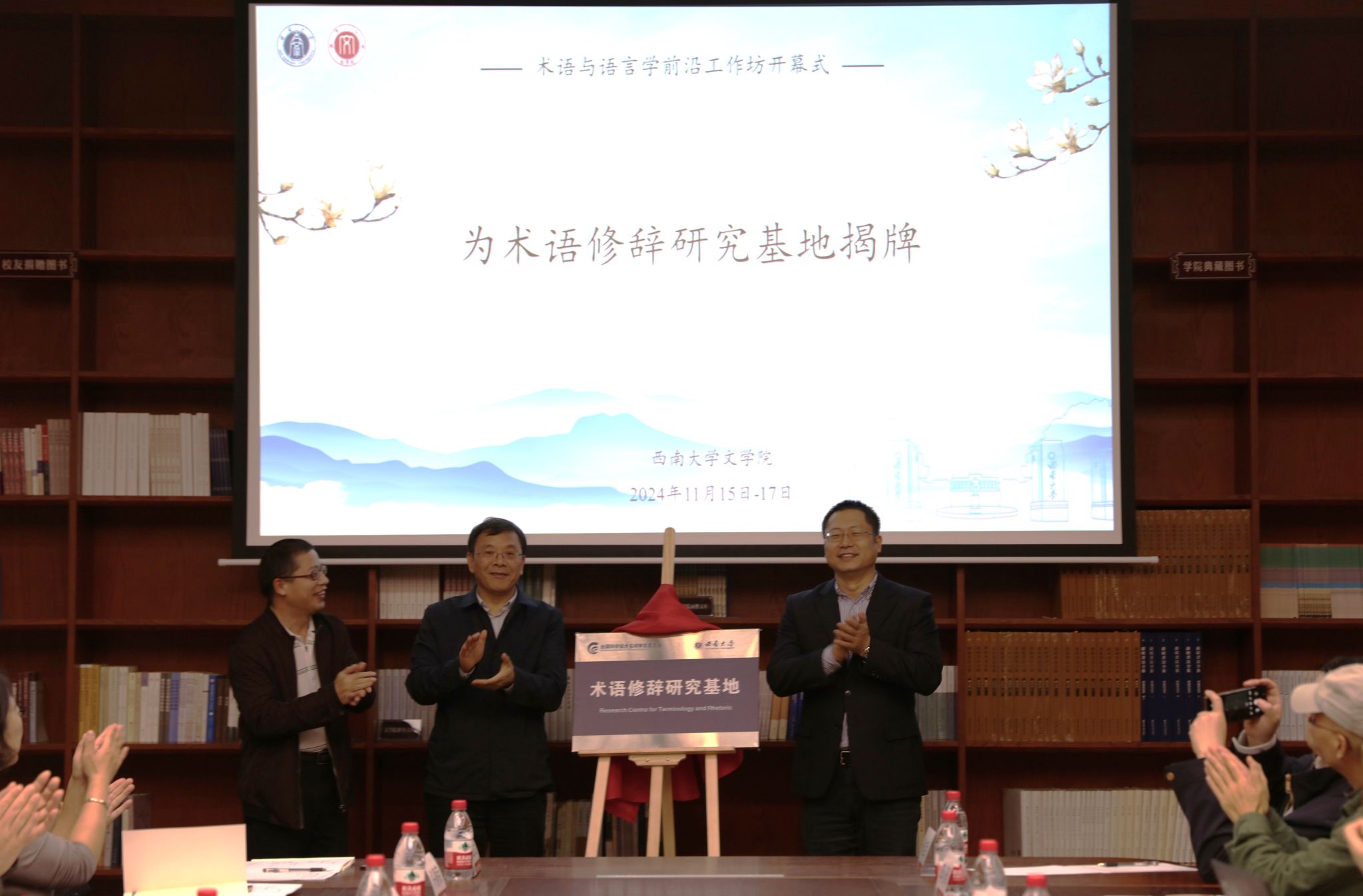 2024年11月15—17日,公司举办术语与语言学前沿工作坊,全国科技名词审定委员会为“术语修辞研究基地”揭牌。全国科技名词审定委员会专职副主任、事务中心主任裴亚军研究员,伟德国际1946经理王本朝教授、副经理张春泉教授出席开幕式,来自北京语言大学、北京外国语大学、广东外语外贸大学、上海外国语大学、黑龙江大学、湖北大学、湖北中医药大学、湖北经济公司、三峡大学、南昌师范公司、伟德BV1946官网等高校及科研院所的21位专家学者参加会议。