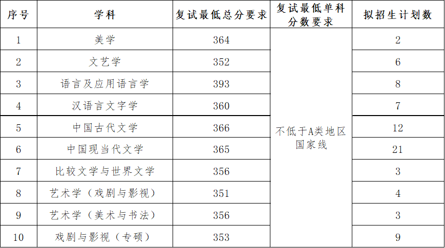 (一) 本单位普通计划考生进入相应学科复试的最低分数要求;(不含享受国家少数民族政策、对口支援政策以及退役老员工士兵专项计划考生)
