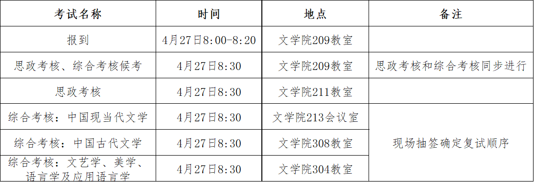 综合考核内容包含(1)外语,重点考查考生的外语水平;(2)专业知识、创新能力与综合素质(含思想品德及身心健康),重点考查考生的基本素养、知识结构、学术能力、学术志趣、研究潜力与学术研究计划等。
