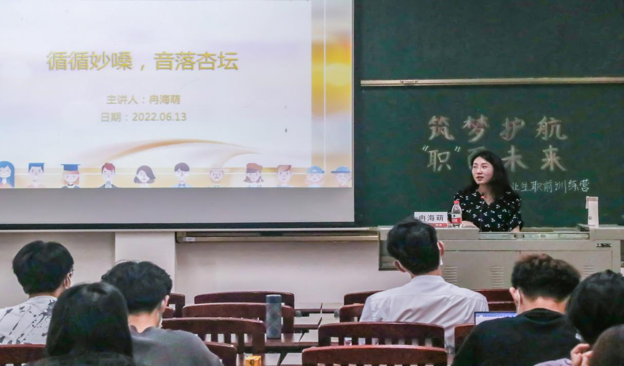 6月13日下午,公司举办“筑梦护航,‘职’面未来”第三期毕业生职前训练营。本次训练营由2020级本科生辅导员冉海萌主讲,以“循循妙嗓,音落杏坛——毕业生科学用嗓培训”为主题开展讲座,全体2022届本科毕业生通过线上线下方式参加。
