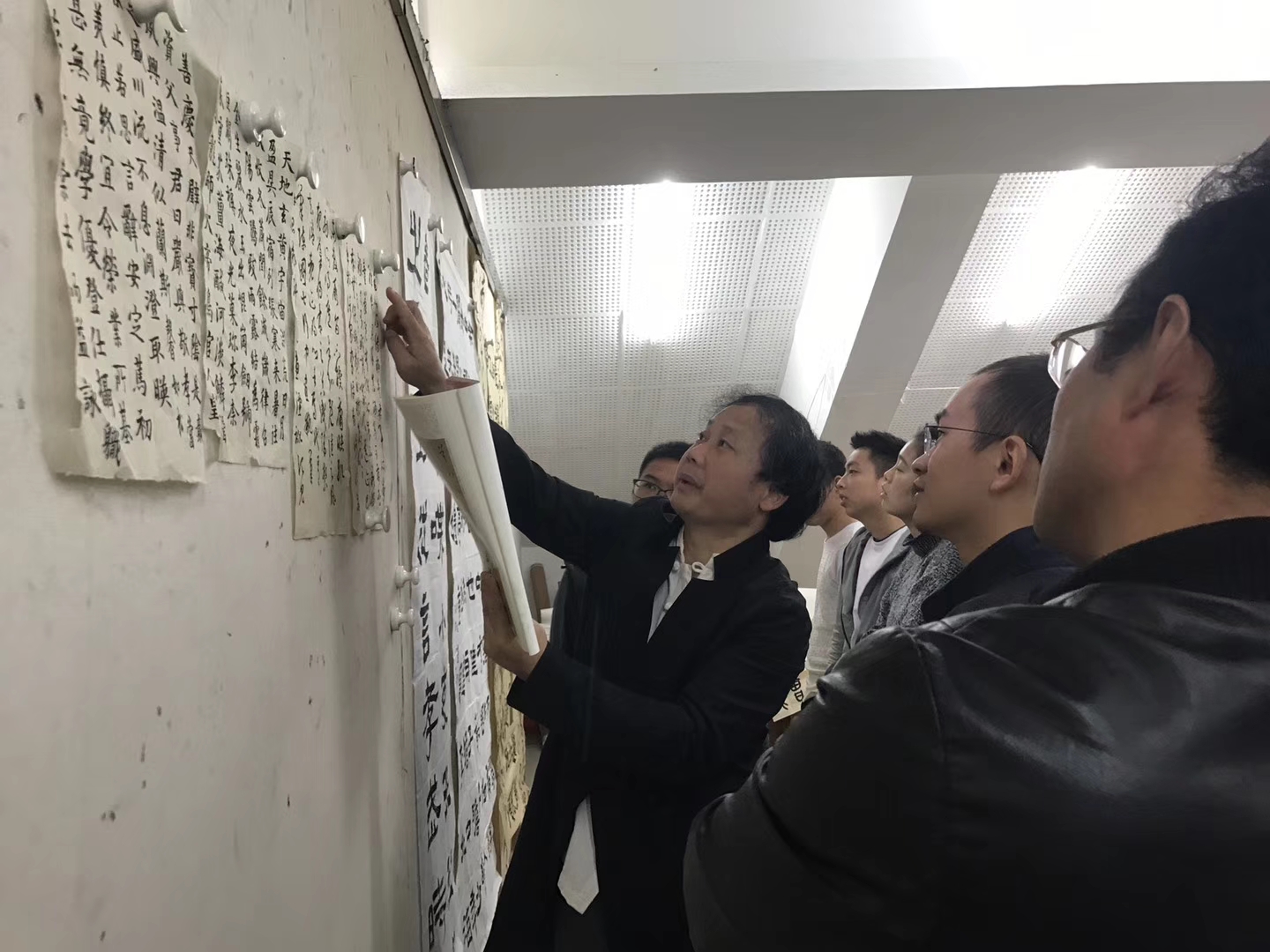 2018年10月13日上午,绍兴文理公司兰亭书法艺术公司副经理刘小华教授到中国书法研究所进行交流指导,中国书法研究所所长曹建教授主持交流活动。刘小华教授对书法所在读博士生、硕士生的书法作品进行了深入点评和指导。