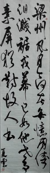 硕士生张夏云孜孜于书法十多年,致力于精微。其论文研究东坡书风碑刻三种,由一而多,深得学术旨趣。其书写内容多取自与论文相关者诗文,书体以行楷、行书见长,根基于智永、米芾上探二王,笔势澜翻,点画传情。