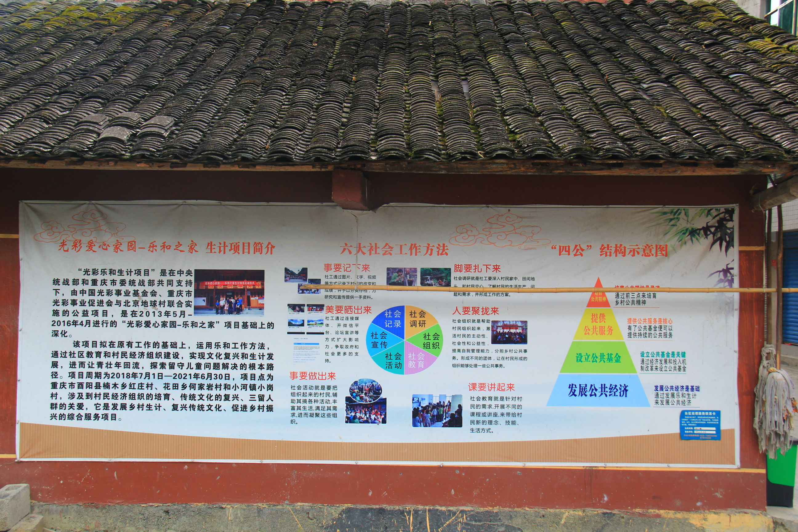 此次志愿服务活动得到了“光彩爱心家园—乐和生计”项目的大力支持。“光彩爱心家园—乐和生计”项目是由基金会支持,政府主导,村民为主体,以互助会为自治基础,以社工服务为技术支撑,以平民教育为切入点,以传统文化为纽带,在各方参与的基本原则上,通过社会组织引进社会资源来建设社区书院、搭建城乡融合平台,以传统文化和契约精神为重点课程内容,以研发乡村文化产品和生产健康生态的农副产品为着力点,促进传统文化的操作化、品牌化、产业化,为乡村文化复兴、乡村产业振兴、城乡融合机制等方面提供新的途径。“光彩爱心家园—乐和生计”项目是“光彩爱心家园—乐和之家”项目的深化方案,项目周期为三年(2018.07-2021.07)。