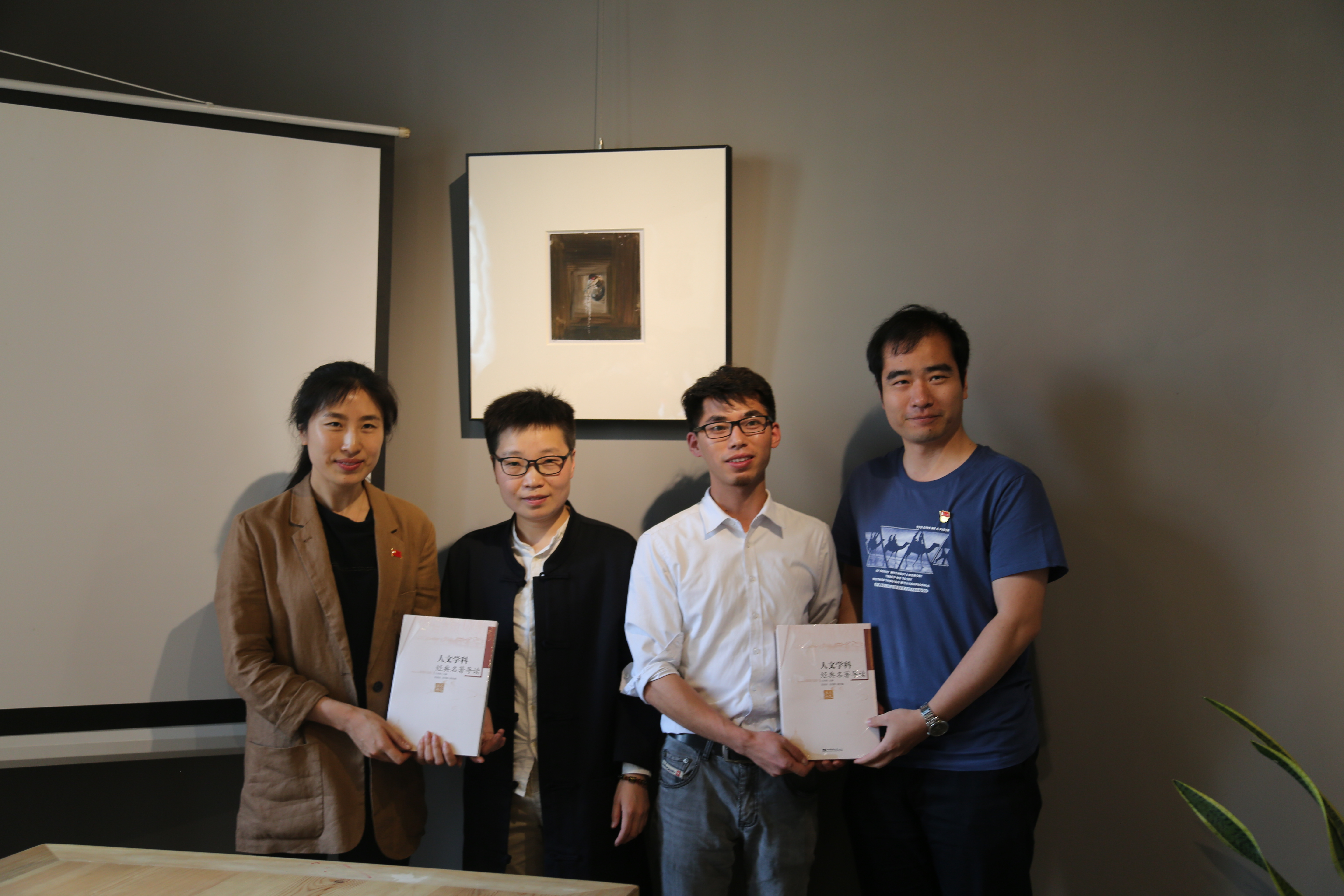 接着,支部党员来到后书时代文化空间开展座谈交流活动。公司党委陈玥书记向微型企业党支部及民办教育公司党支部介绍了公司党务开展基本情况,并指出企业支部与公司支部存在差异,工作各有特色,应互相学习互相借鉴。随后各支部就习近平总书记在纪念五四运动100周年大会上的重要讲话精神、习近平总书记在重庆考察并主持召开解决“两不愁三保障”突出问题座谈会上的重要讲话精神等内容进行了深入探讨。接着,北碚区民办教育公司党支部书记杜秀敏分享了创业和公益活动经历,出于对阅读的热爱,毕业后创办后书时代,推广全民阅读,坚持举办公益阅读讲座,坚持每周五晚举办读书会,鼓励支部党员珍惜在校的学习机会,阅读经典书目,传承优秀传统文化。最后,陈玥书记做总结发言,希望进一步加强支部共建活动,将主题党日“走出去”,提升党员教育实效,并向微型企业党支部、北碚区民办教育公司党支部赠送了伟德国际1946王本朝教授主编的图书《人文学科经典名著导读》。